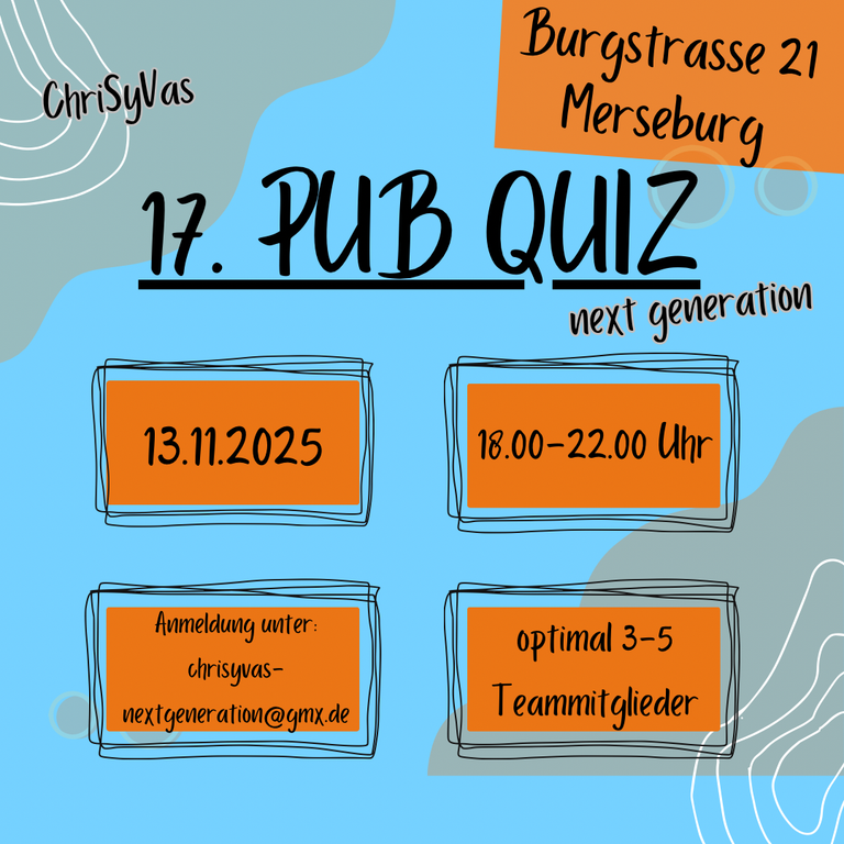 Am 13.11.2025 findet unser 17. Pub-Quiz statt. Habt ihr Lust auf einen geselligen Abend, spannende Quizfragen und eine lockere Atmosphäre?