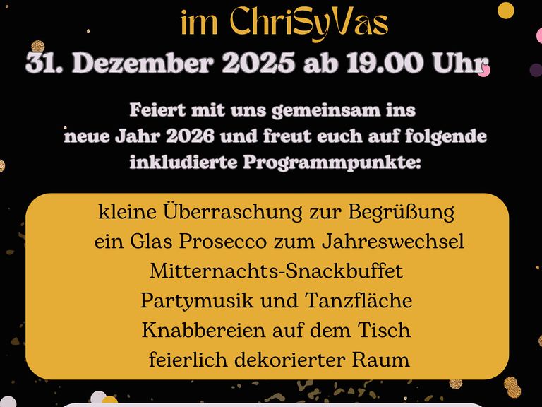 Am 31.12.2025 ab 19.00Uhr öffnen wir unsere Tür.